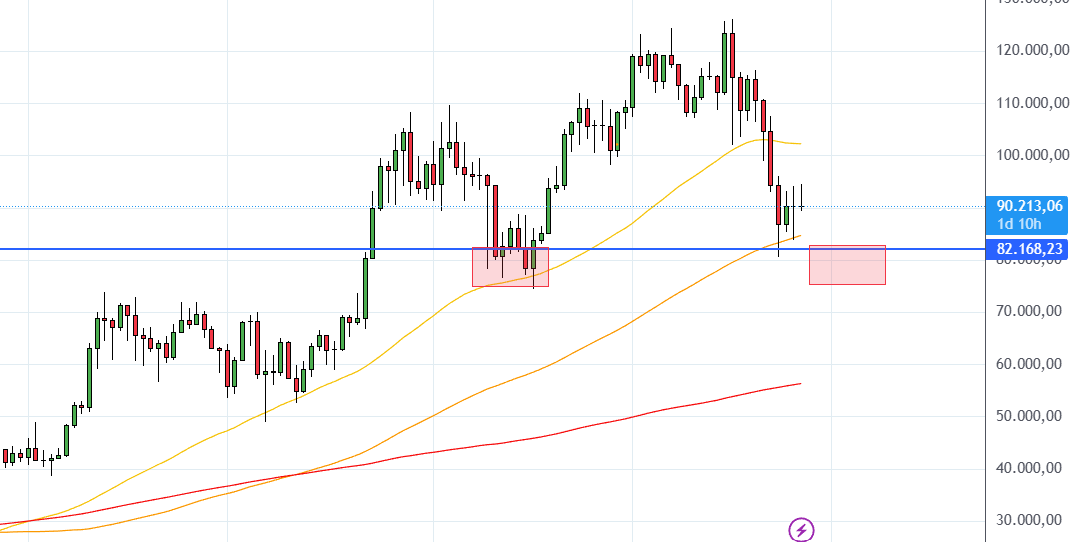 El primer objetivo es retestear los 100.000$, y probablemente los rechazaremos la primera vez para una falsa confirmación bajista. En ese punto lo más probable es que todo el mundo saque gráficas con flechas apuntando a los 50.000-60.000$, pero en ese escenario yo estaría buscando un doble suelo alrededor de los 75-80K.